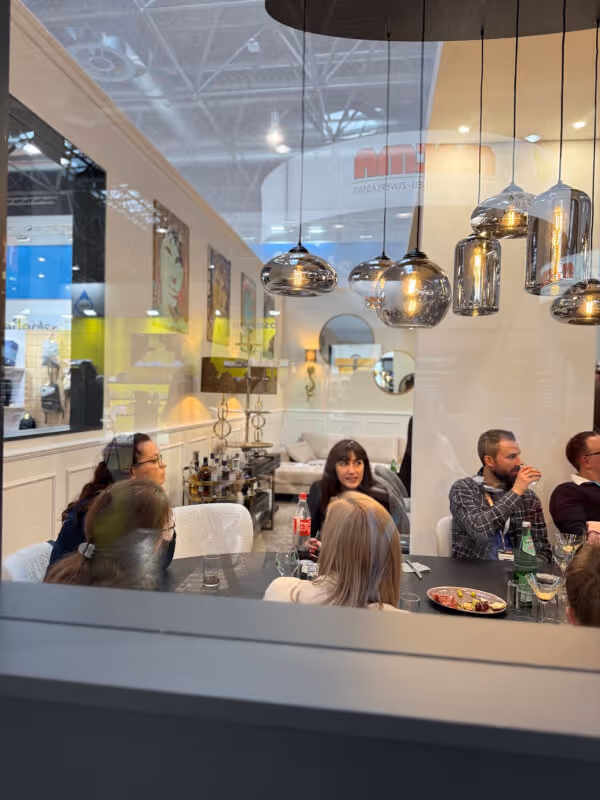 I was impressed with the countless options from suppliers like UMA, Stabilo and Tancia Group, who also developed clever planning for their displays– making it an interactive, immersive experience. Not only were you able to browse products, but also sit down with suppliers over espresso, appetizers, and even champagne. (Cheers!) Meeting suppliers in person has brought my day to day work to life– especially being in the digital age. Now while coordinating a project with a supplier- I’ll always remember getting to know the individuals on the other side of the phone and the partnership built in achieving our shared goals of client success.